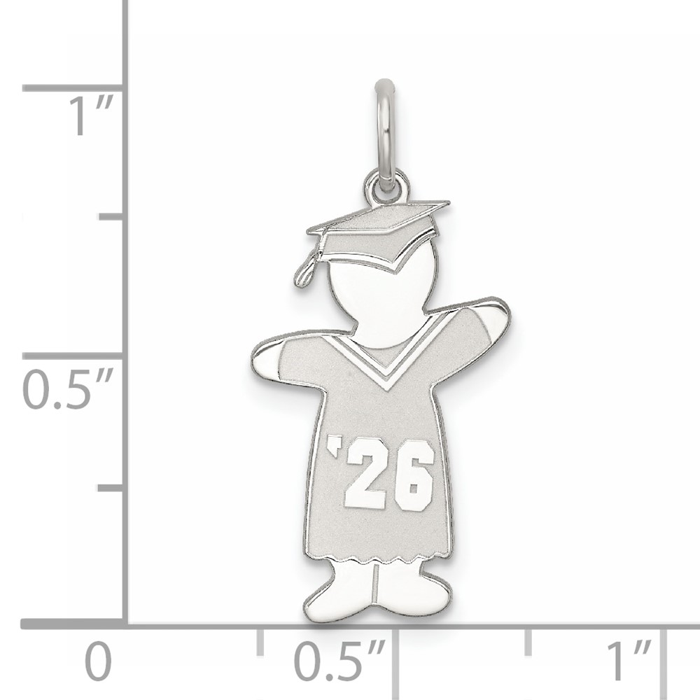 Sterling Silver Rhodium-plated Class of 2026 Boy Cuddle Charm