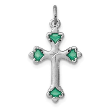 Sterling Silver Rhodium-plated Cross Disc Charm
