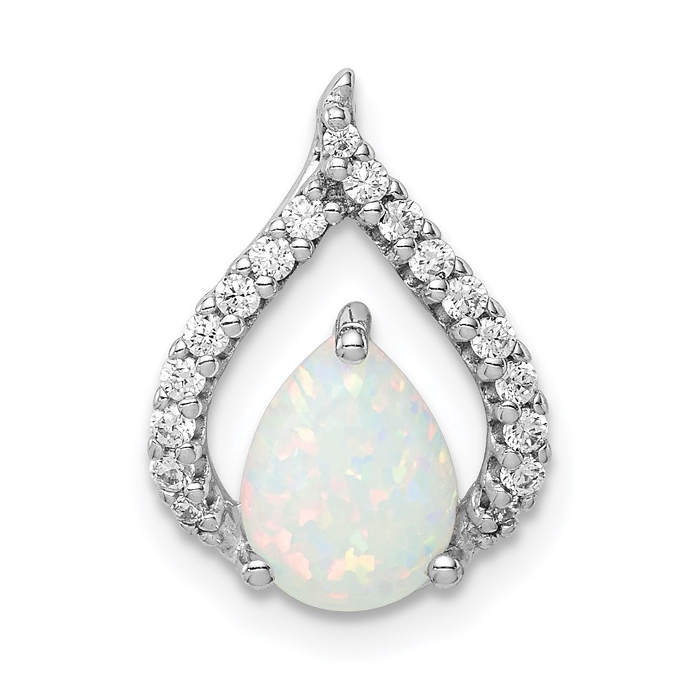 Sterling Silver Rhodium Plated CZ and Lab Created Opal Chain Slide