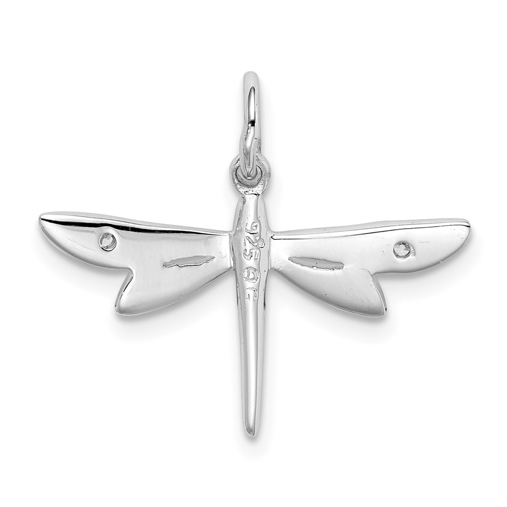Sterling Silver Rhodium-plated CZ Dragonfly Pendant