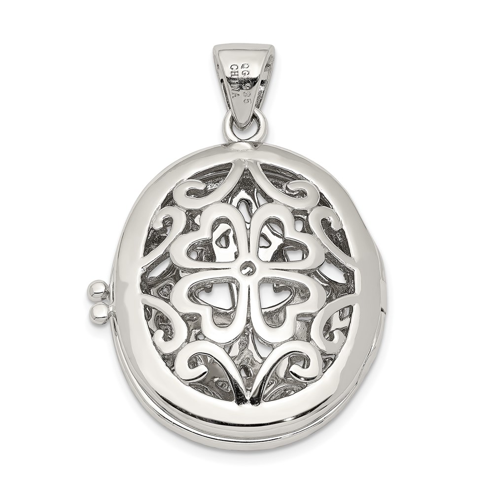 Sterling Silver Rhodium-plated CZ Fancy Filigree Oval 22mm Locket