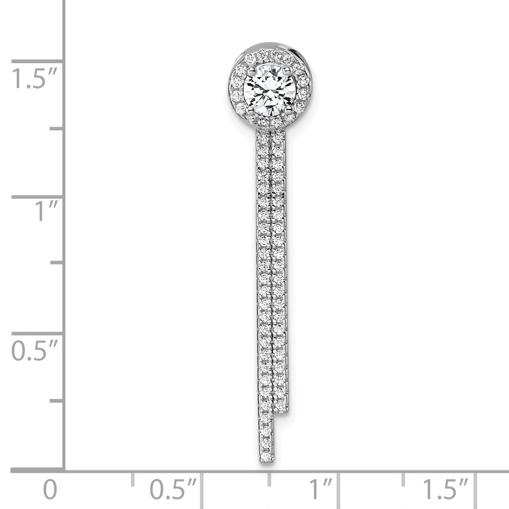 Sterling Silver Rhodium-plated CZ Halo with Dangle Bar Chain Slide Pendant