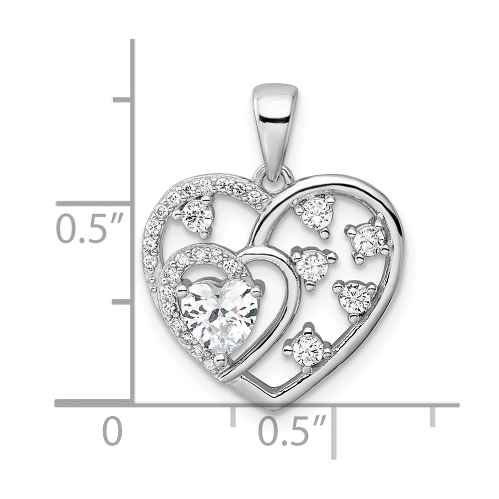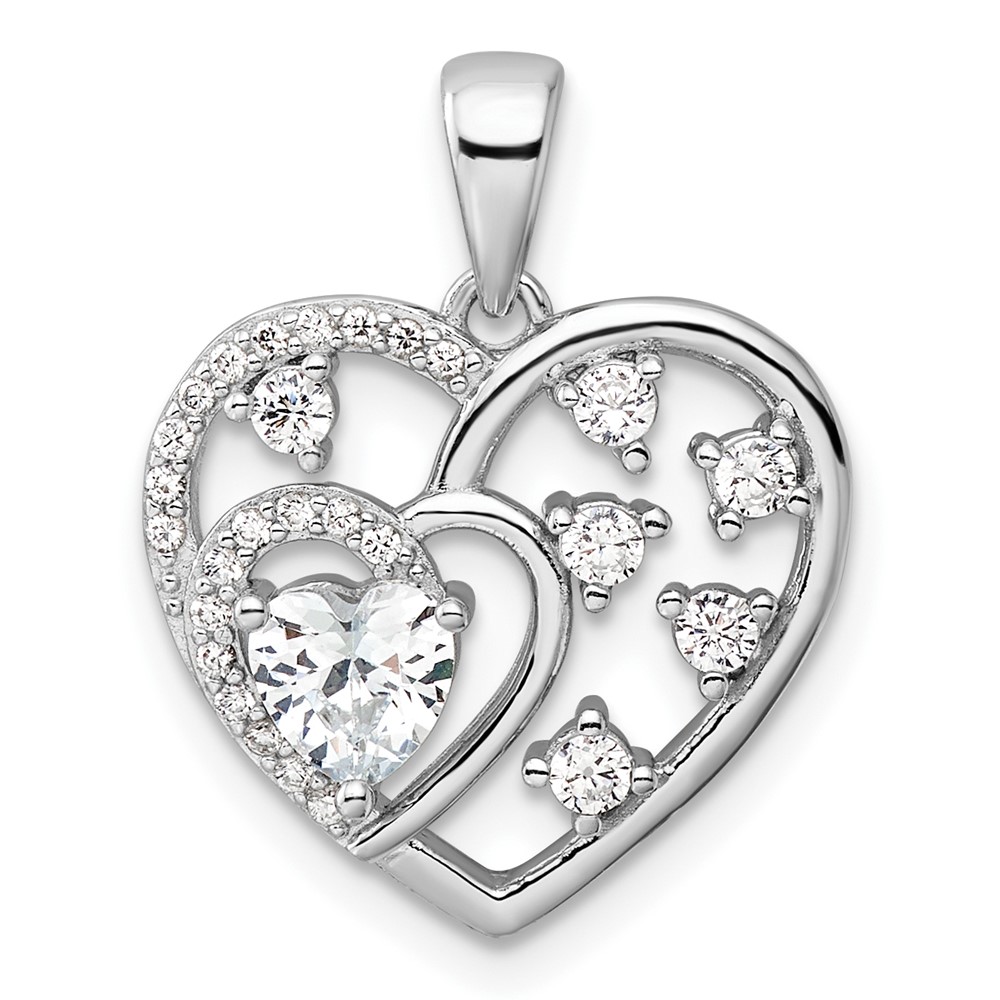 Sterling Silver Rhodium-plated CZ Heart Pendant