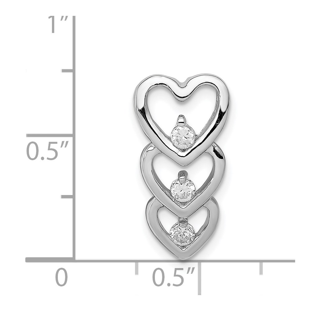 Sterling Silver Rhodium Plated CZ Multi Hearts Chain Slide
