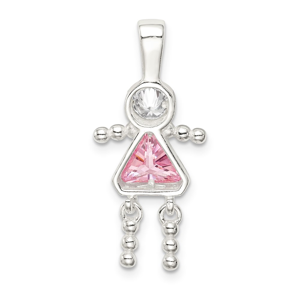 Sterling Silver Rhodium-plated CZ & October Pink CZ Girl Pendant