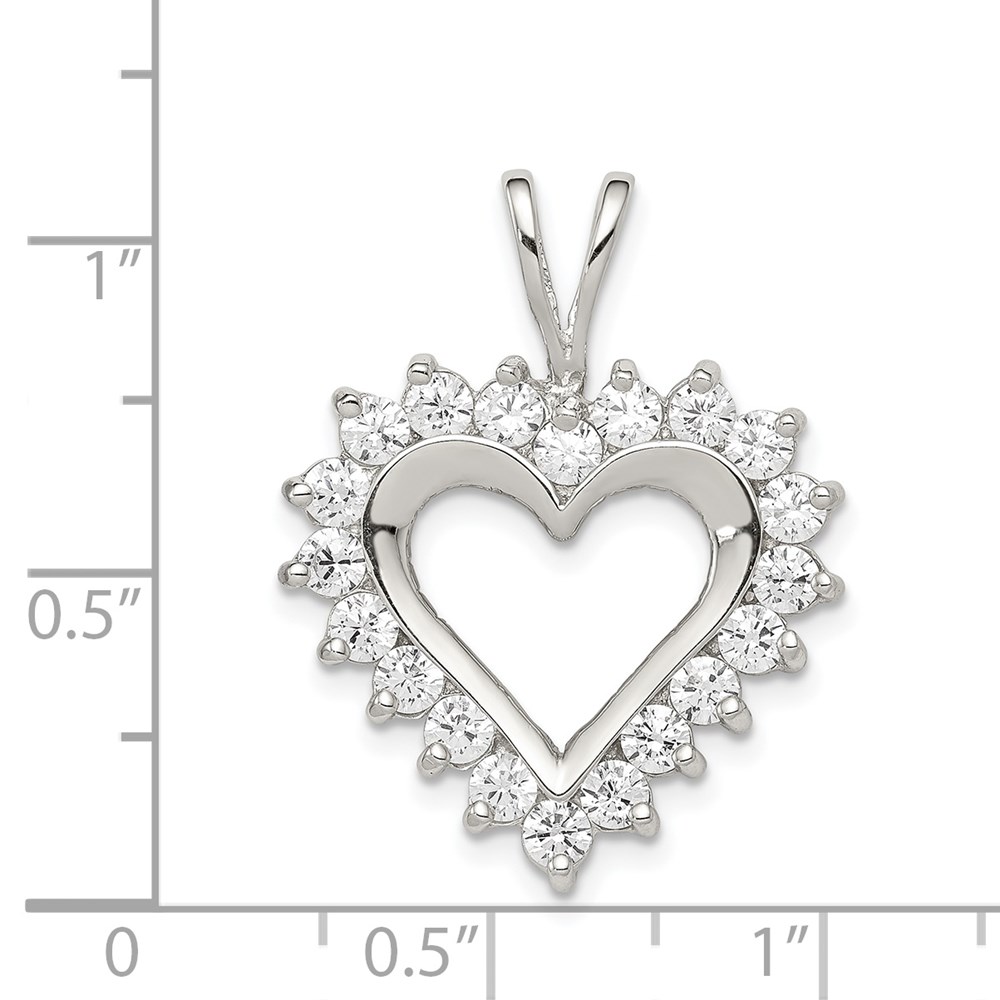 Sterling Silver Rhodium-plated CZ Open Heart Pendant