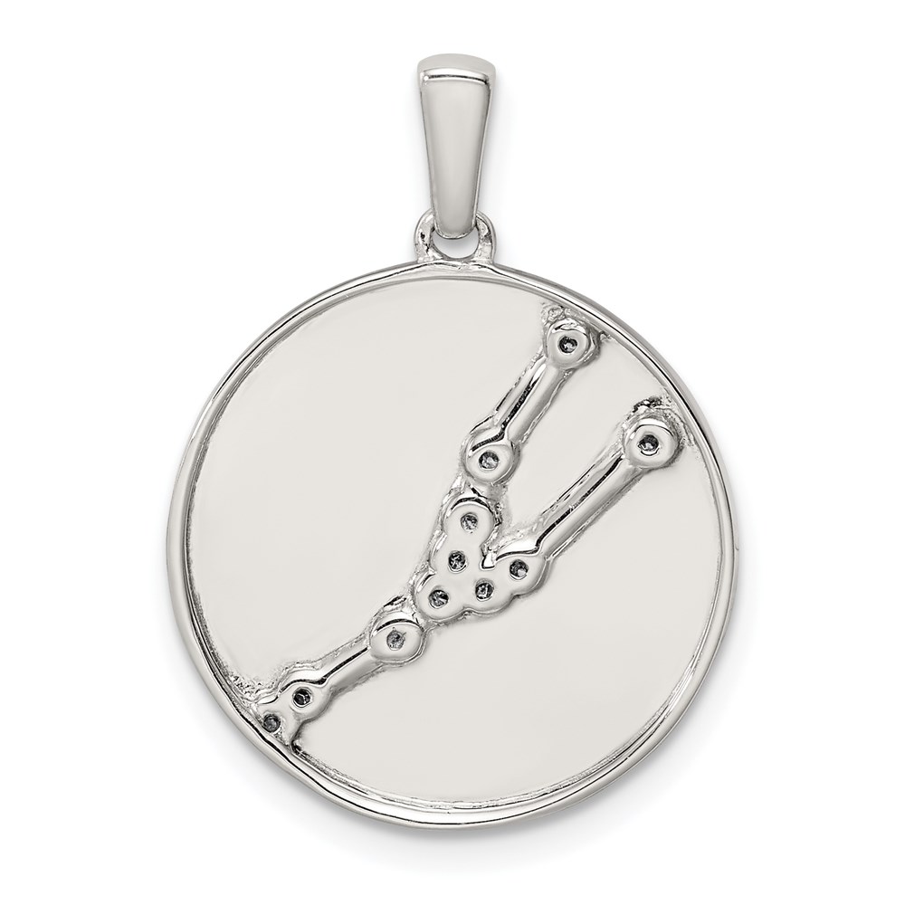 Sterling Silver Rhodium-plated & CZ Taurus Zodiac Pendant