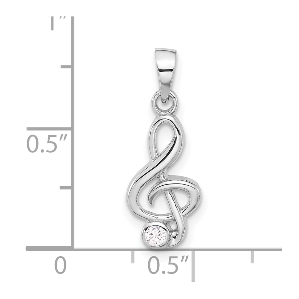 Sterling Silver Rhodium-plated CZ Treble Clef Pendant