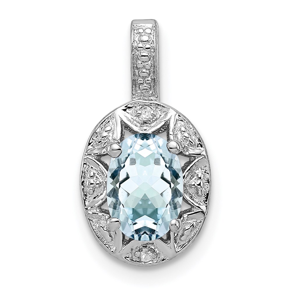 Sterling Silver Rhodium-plated Diam. & Aquamarine Pendant