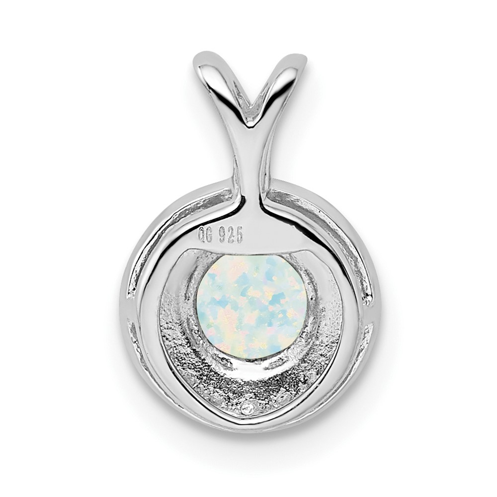 Sterling Silver Rhodium-plated Diam. & Created Opal Pendant