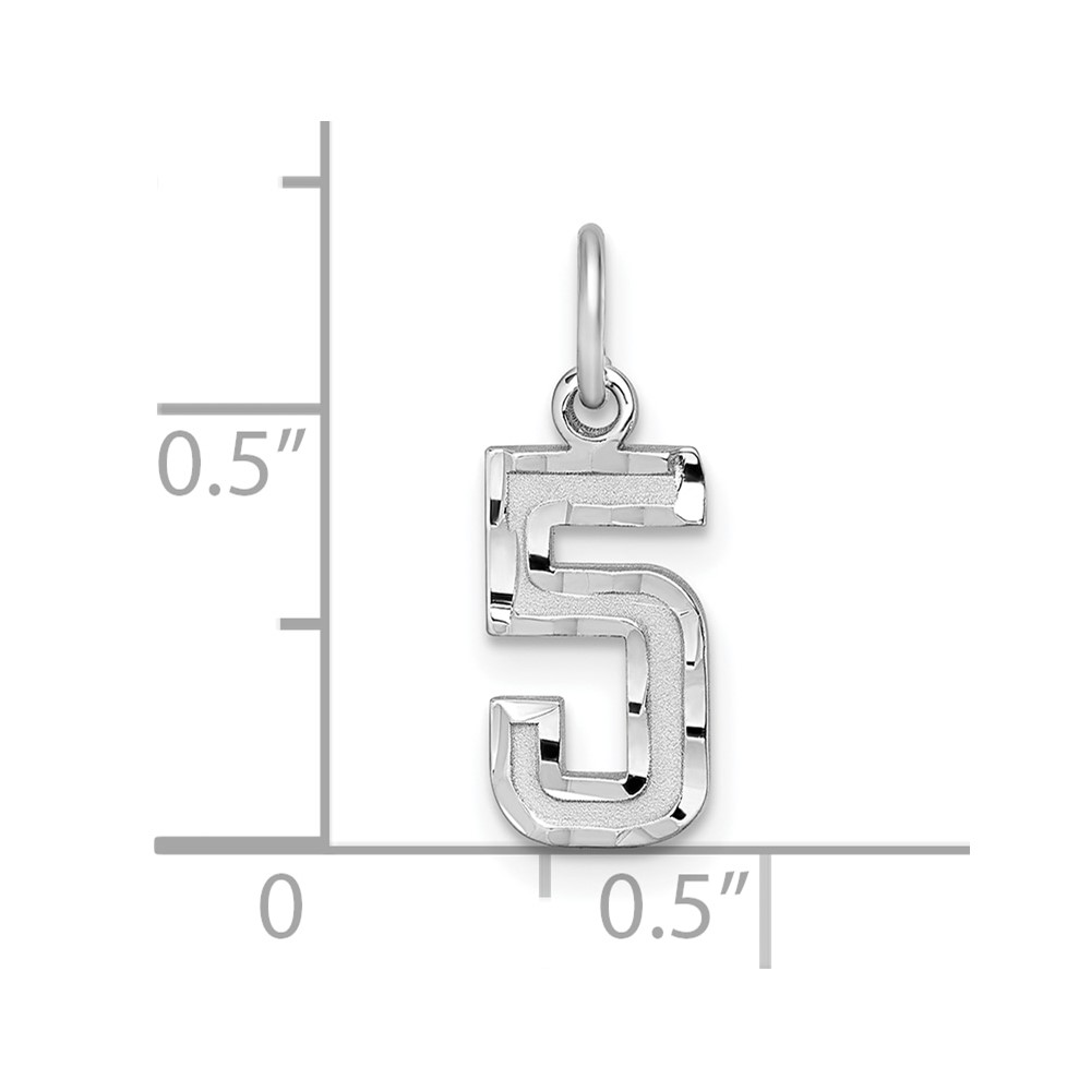 Sterling Silver Rhodium-plated Diamond-cut #5 Charm