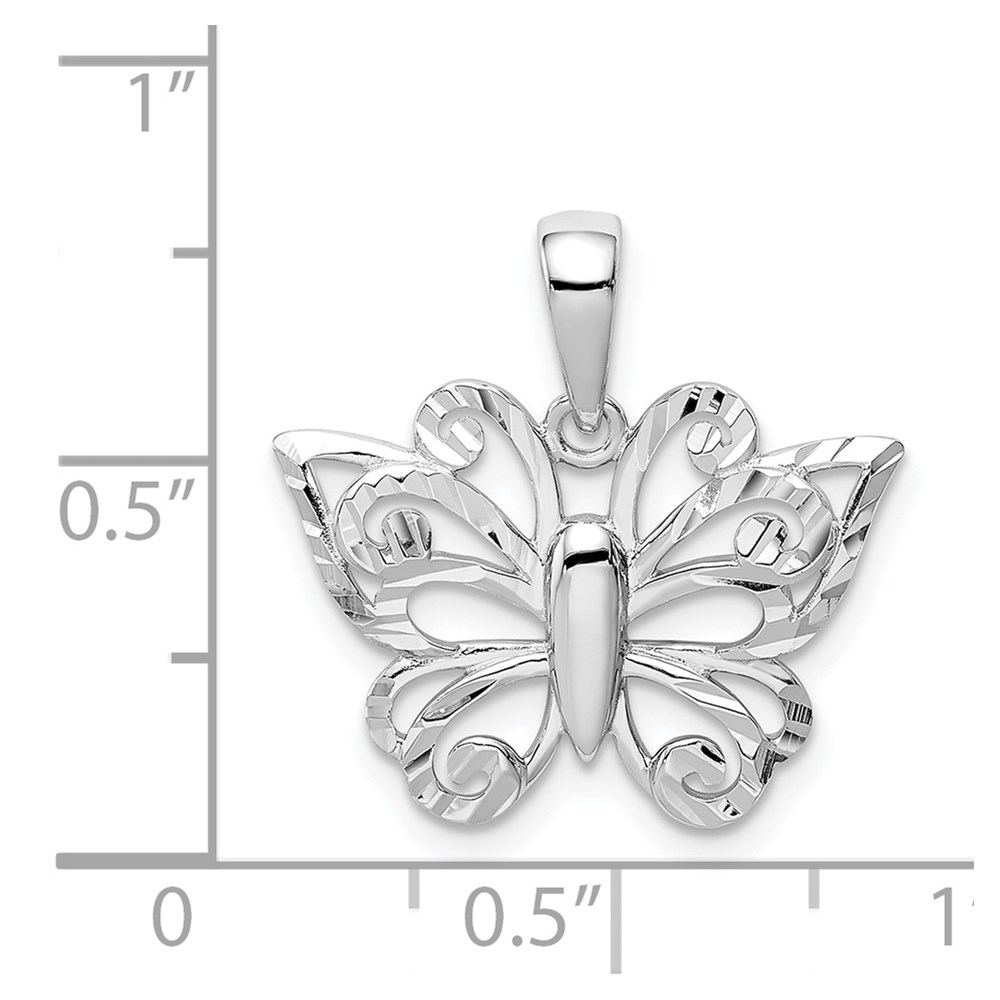 Sterling Silver Rhodium Plated Diamond-cut Butterfly Pendant