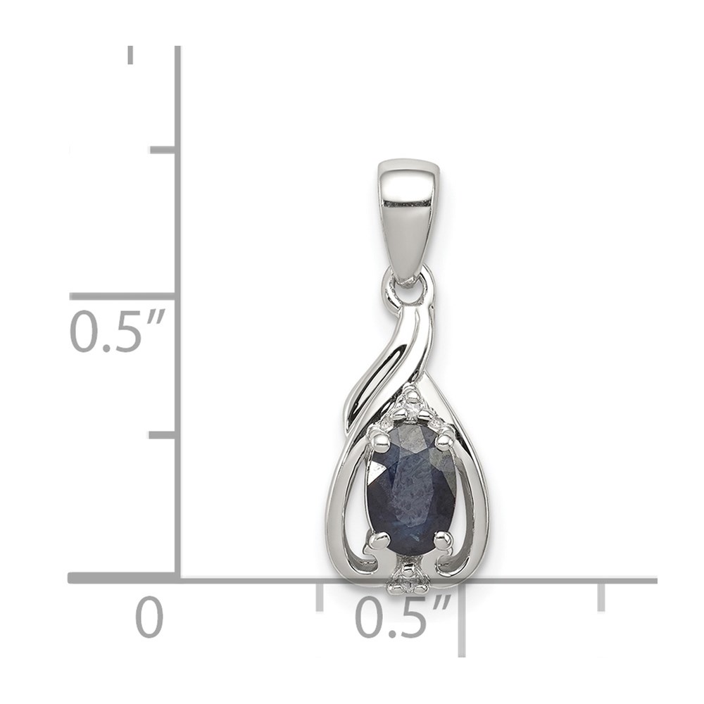 Sterling Silver Rhodium Plated Diamond & Sapphire Oval Pendant