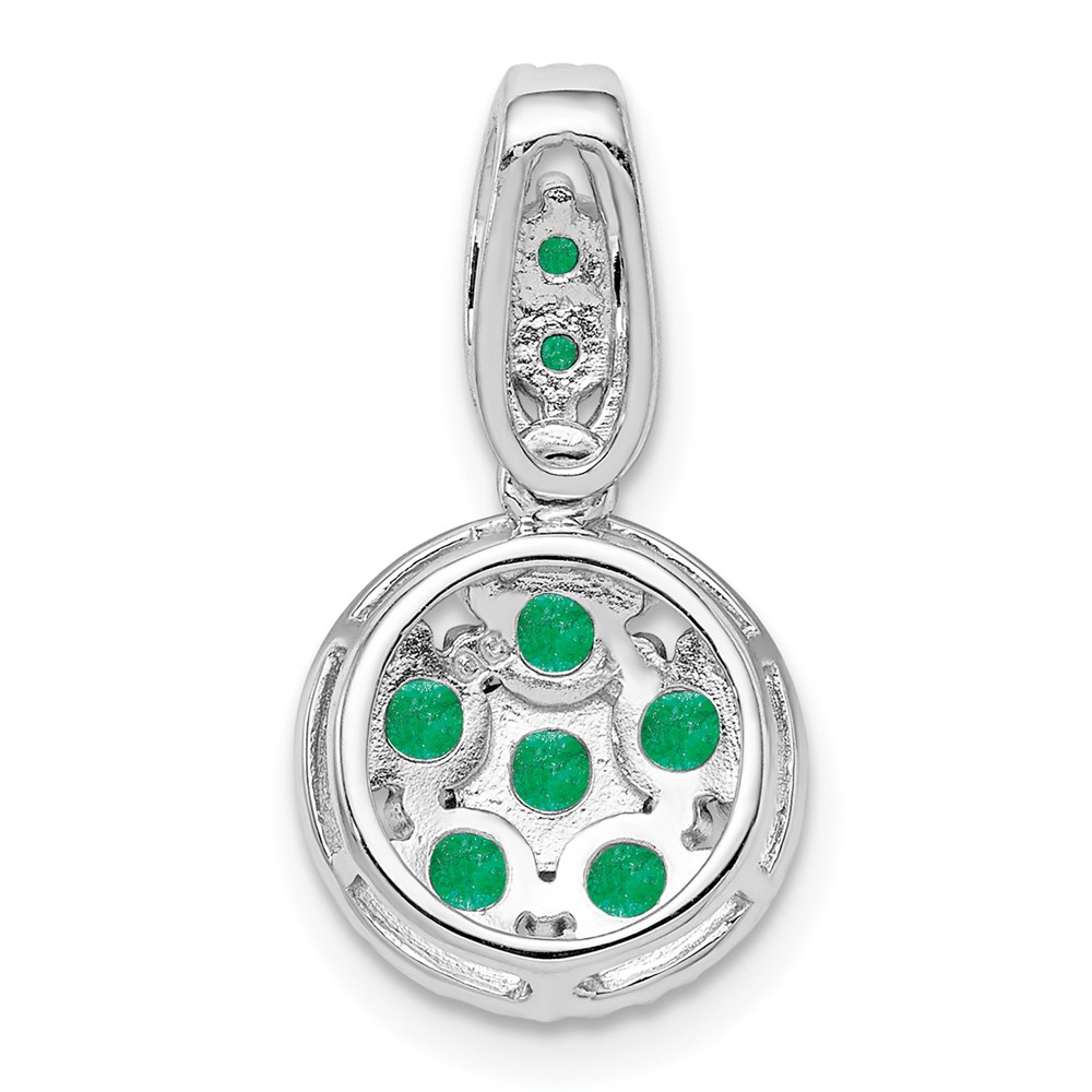 Sterling Silver Rhodium-plated & Emerald Circle Pendant
