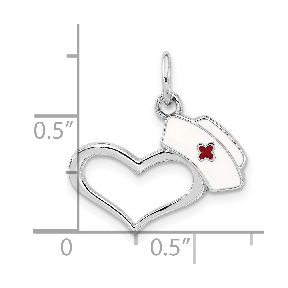 Sterling Silver Rhodium-plated Enameled Nurses Hat with Heart Pendant