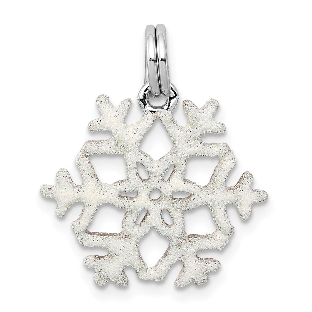 Sterling Silver Rhodium-plated Enameled Snowflake Charm