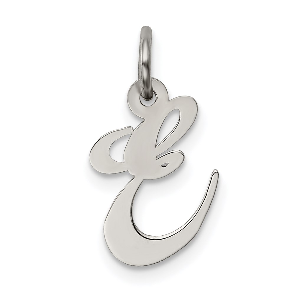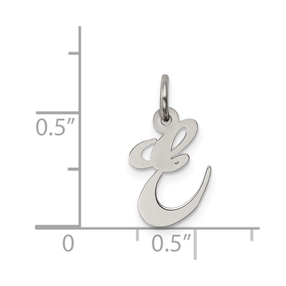 Sterling Silver Rhodium-plated Fancy Script Letter E Initial Charm