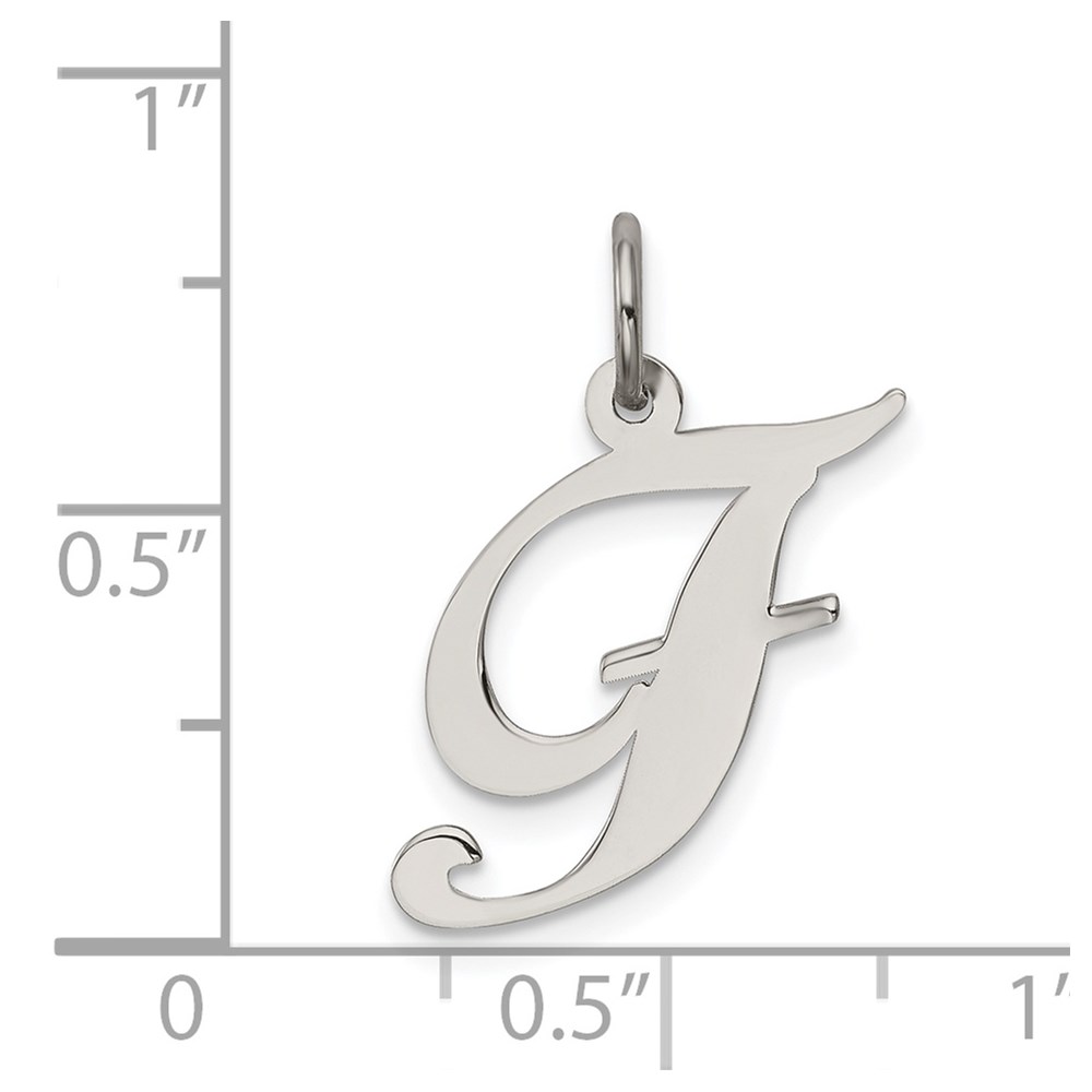 Sterling Silver Rhodium-plated Fancy Script Letter F Initial Charm