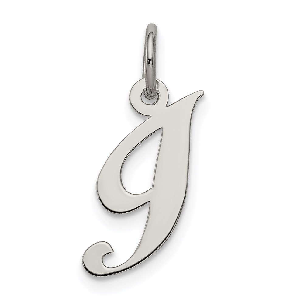 Sterling Silver Rhodium-plated Fancy Script Letter I Initial Charm