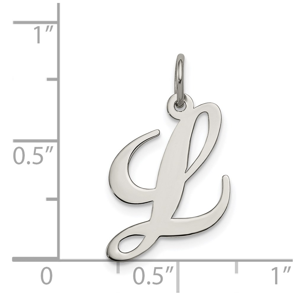 Sterling Silver Rhodium-plated Fancy Script Letter L Initial Charm