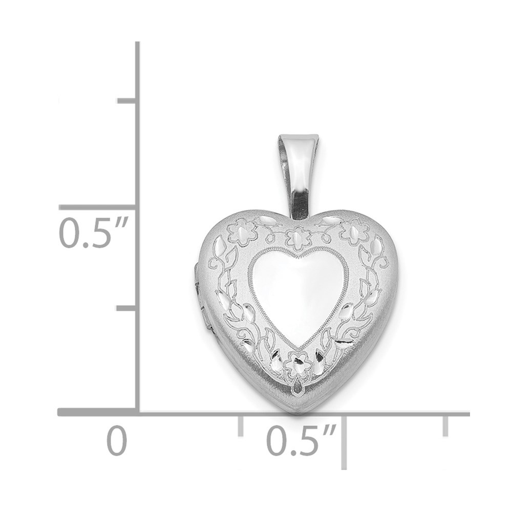 Sterling Silver Rhodium-plated Flower Border 12mm Heart Locket