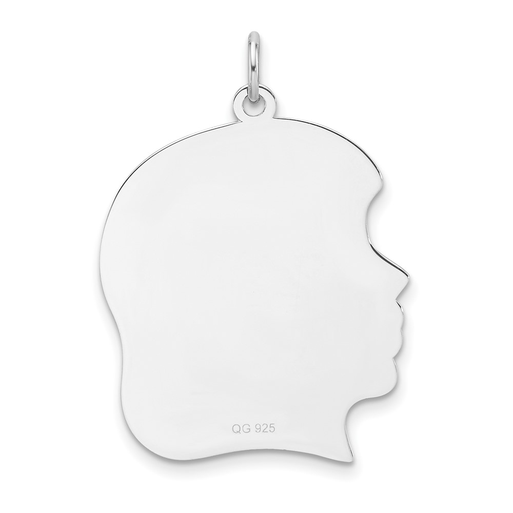 Sterling Silver Rhodium Plated Girl Polished Front and Back Disc Charm