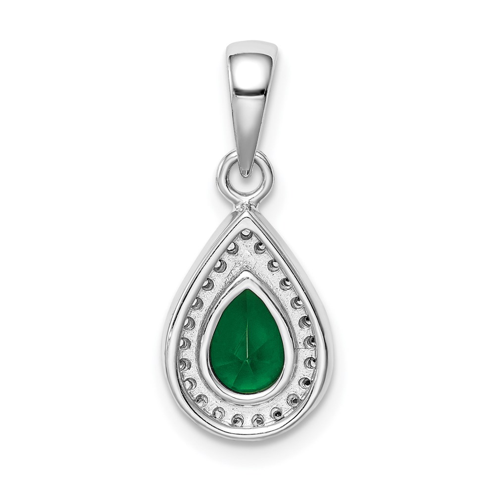 Sterling Silver Rhodium Plated Green and Clear CZ Pendant