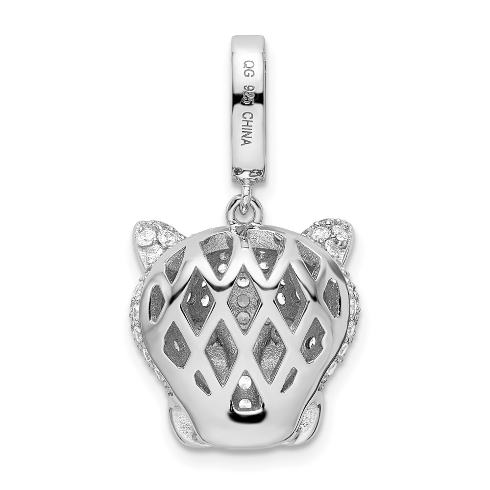 Sterling Silver Rhodium-plated Green & White CZ Panther Pendant