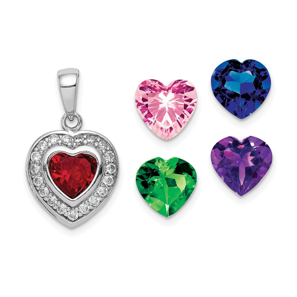 Sterling Silver Rhodium Plated Interchangeable CZ Heart Pendant