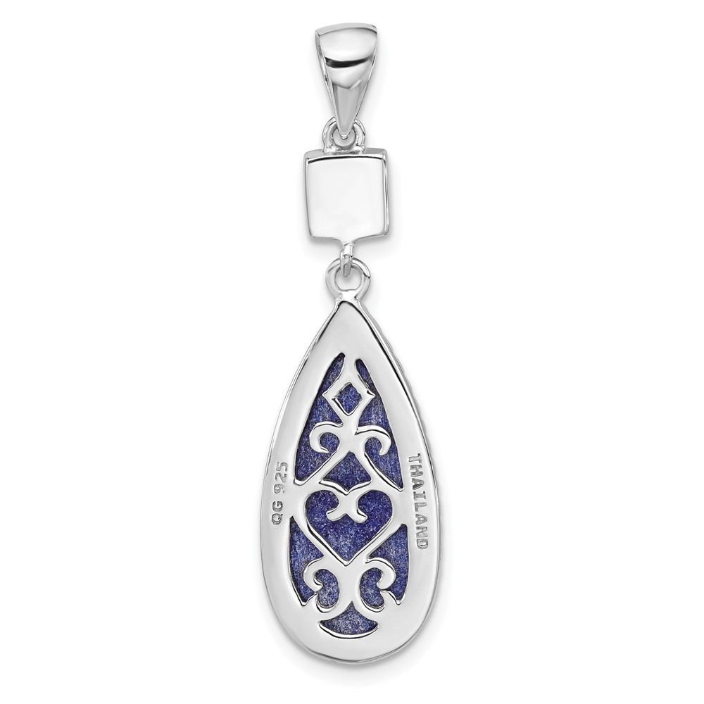 Sterling Silver Rhodium-plated Lapis Lazuli and CZ Pendant