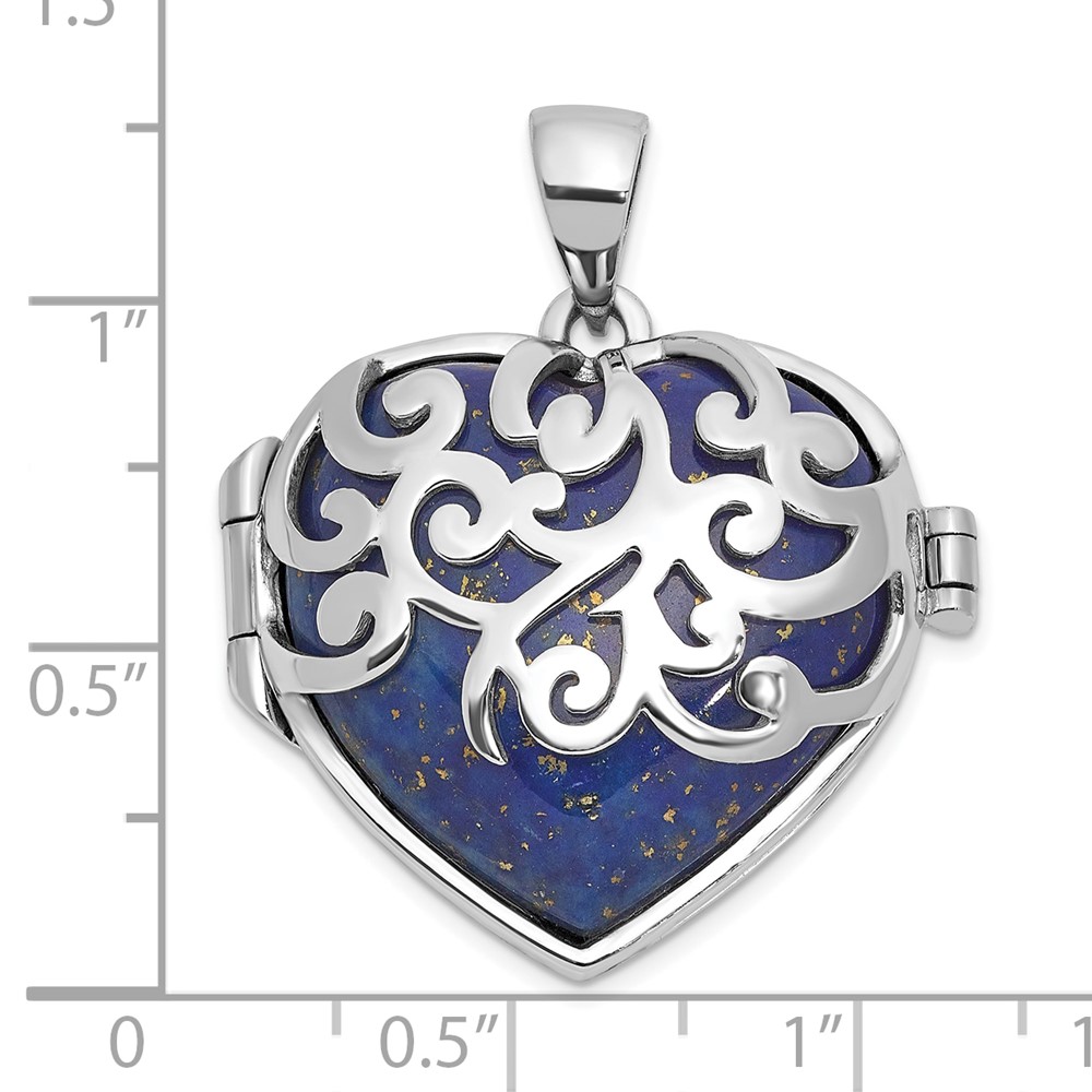Sterling Silver Rhodium-plated Lapis Lazuli Heart 23mm Locket Pendant