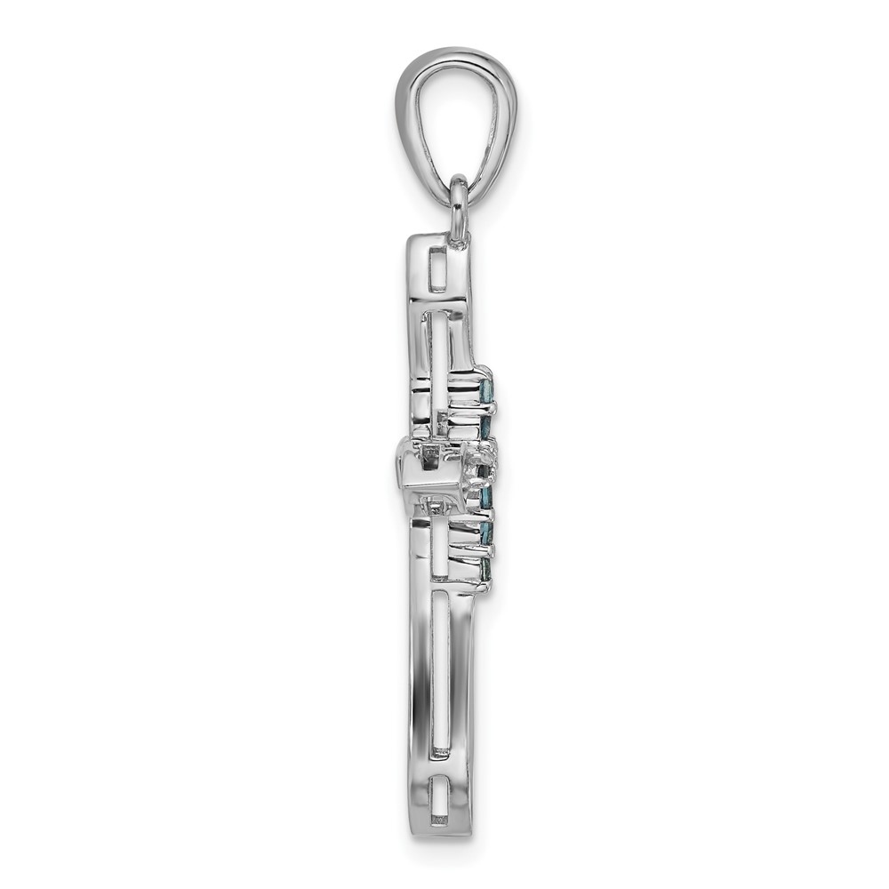 Sterling Silver Rhodium-plated London Blue Topaz Cross Pendant