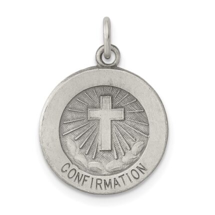 Sterling Silver Rhodium-plated My Confirmation Disc Charm