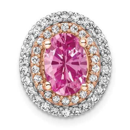 14k Two Tone 1/5 carat Lab Grown Diamond VS/SI+ G+ and Lab Created Pink Sapphire Chain Slide Pendant