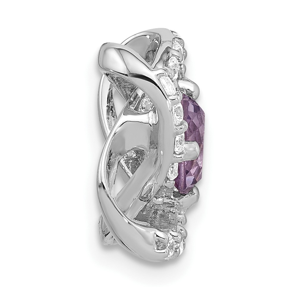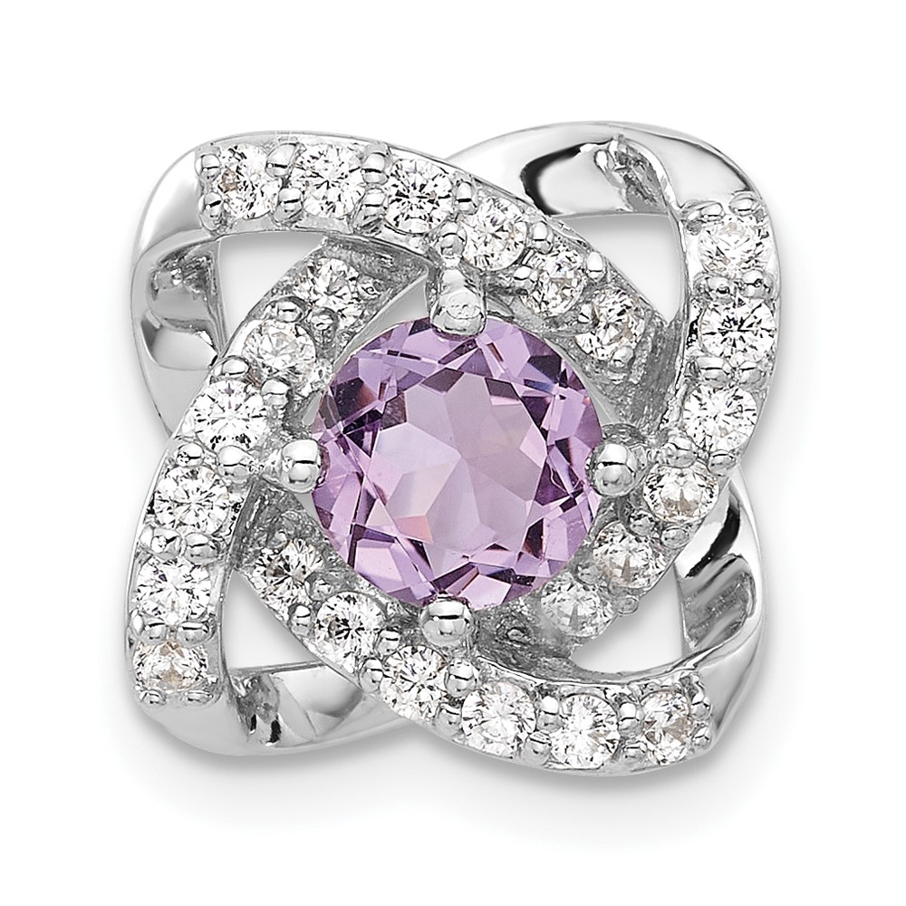 Sterling Silver Rhodium-plated Polished Amethyst/CZ Chain Slide Pendant