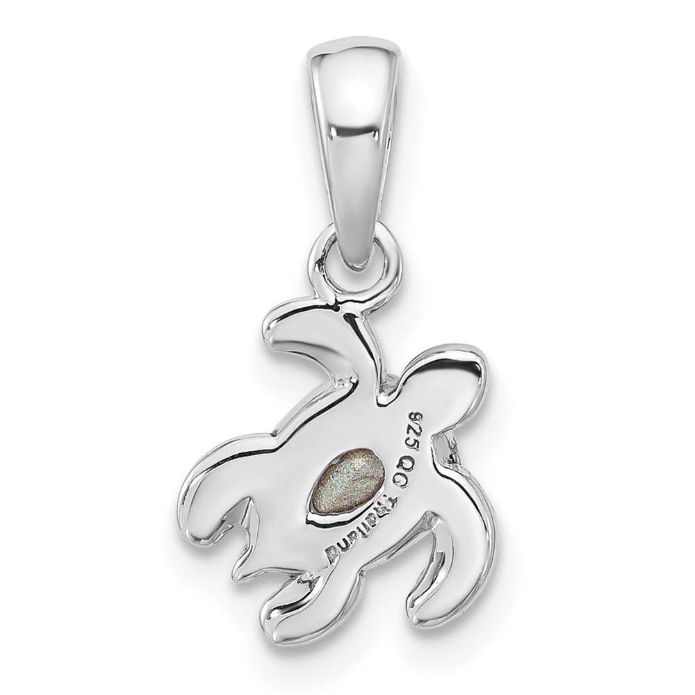 Sterling Silver Rhodium-plated Polished and Antiqued Crystal August Birthstone Turtle Pendant