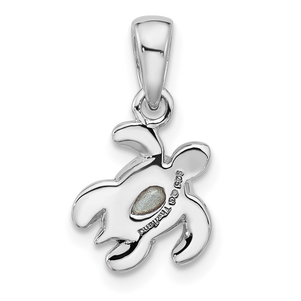 Sterling Silver Rhodium-plated Polished and Antiqued Crystal February Birthstone Turtle Pendant