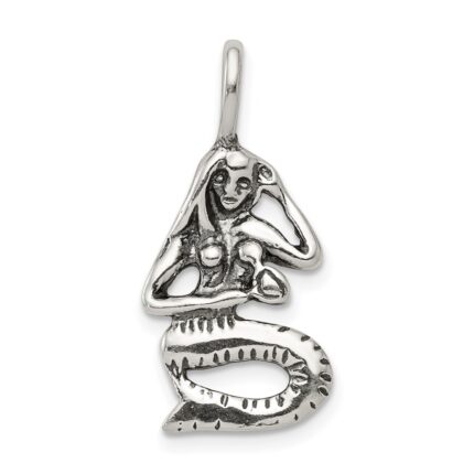 Sterling Silver Rhodium-Plated Polished & Antiqued Crystal Mermaid Tail Pendant