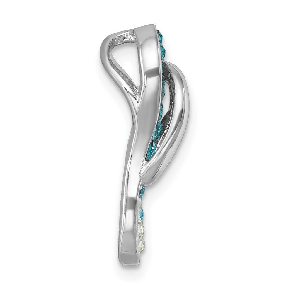 Sterling Silver Rhodium-plated Polished Blue Crystal Flip Flop Chain Slide