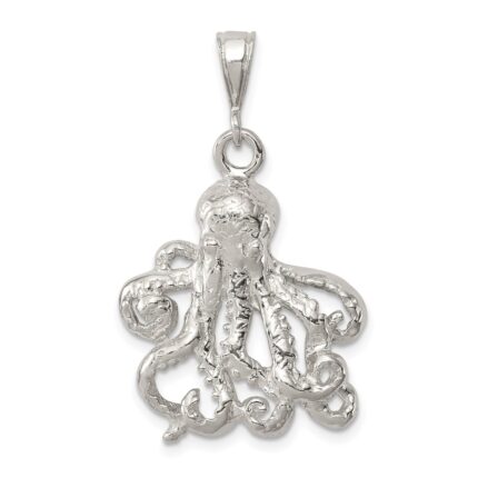 Sterling Silver Rhodium-plated Polished Blue Crystal Octopus Pendant