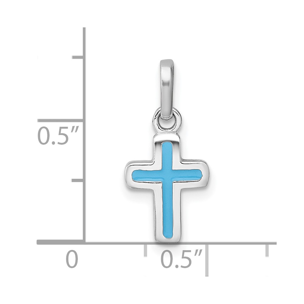 Sterling Silver Rhodium-plated Polished Blue Enamel Childrens Cross Charm Pendant