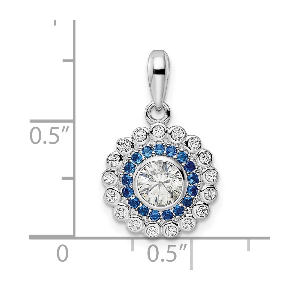 Sterling Silver Rhodium-plated Polished Blue & White CZ Pendant