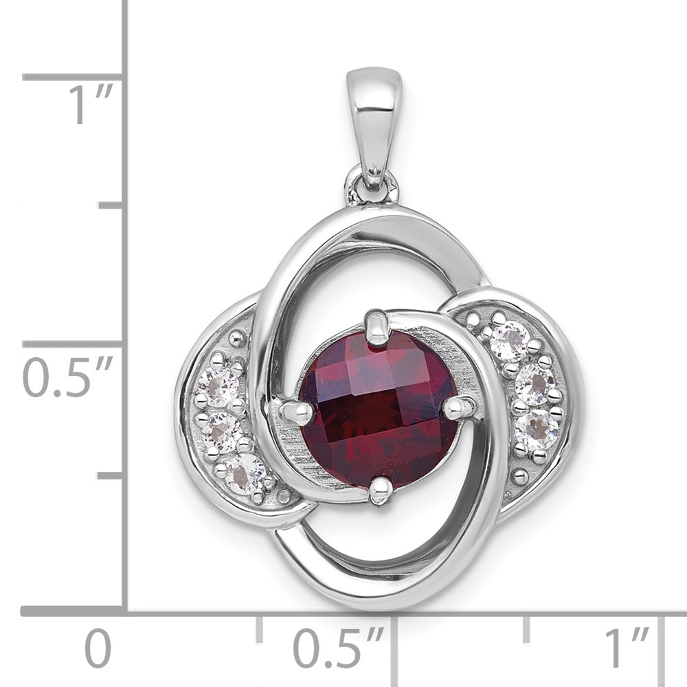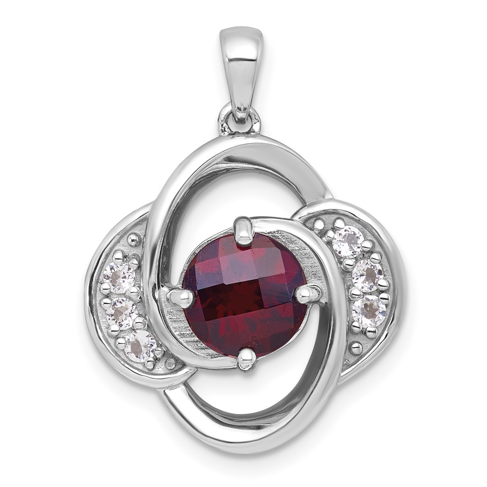 Sterling Silver Rhodium-plated Polished Checker-cut Round Garnet and White Topaz Pendant