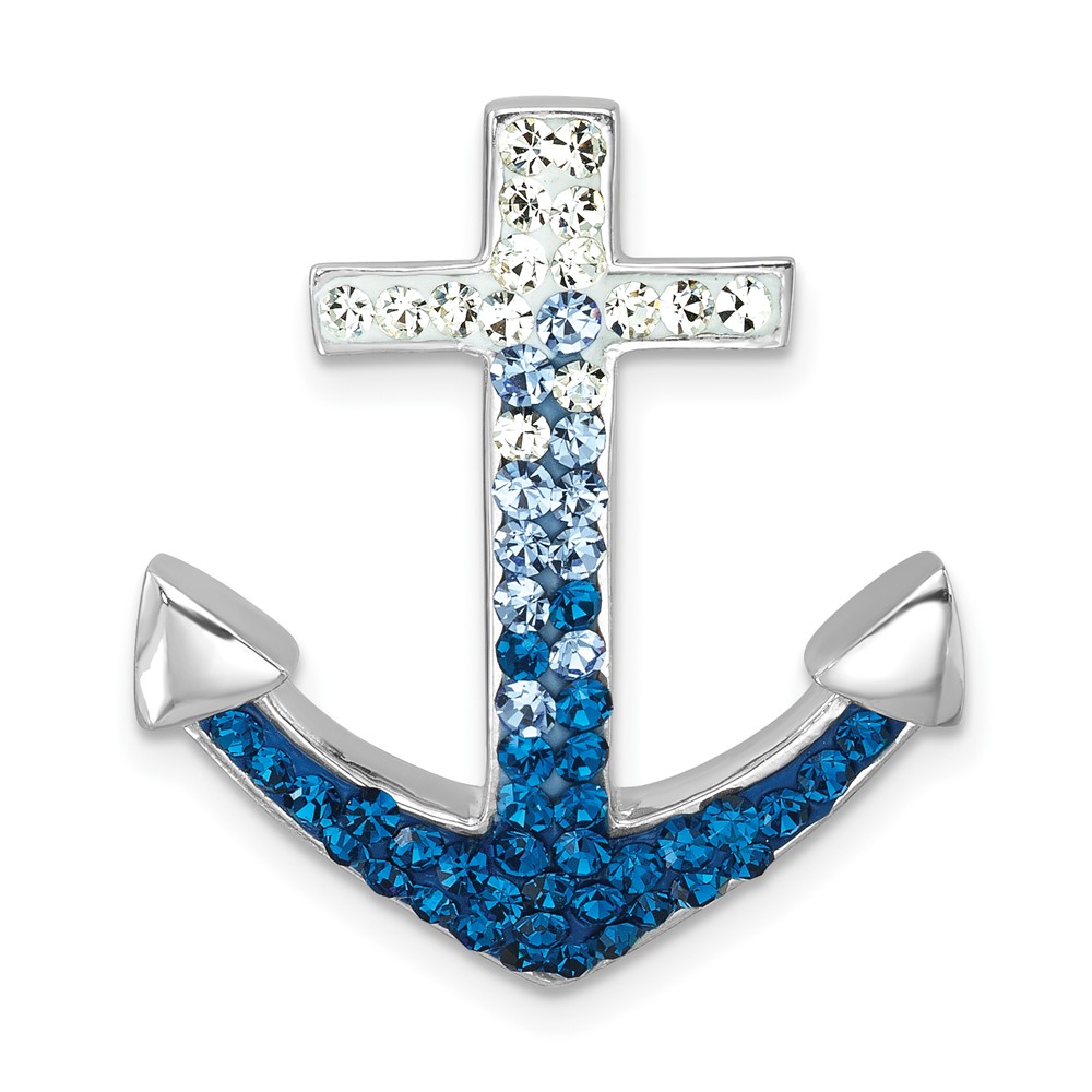 Sterling Silver Rhodium-Plated Polished Crystal Anchor Chain Slide