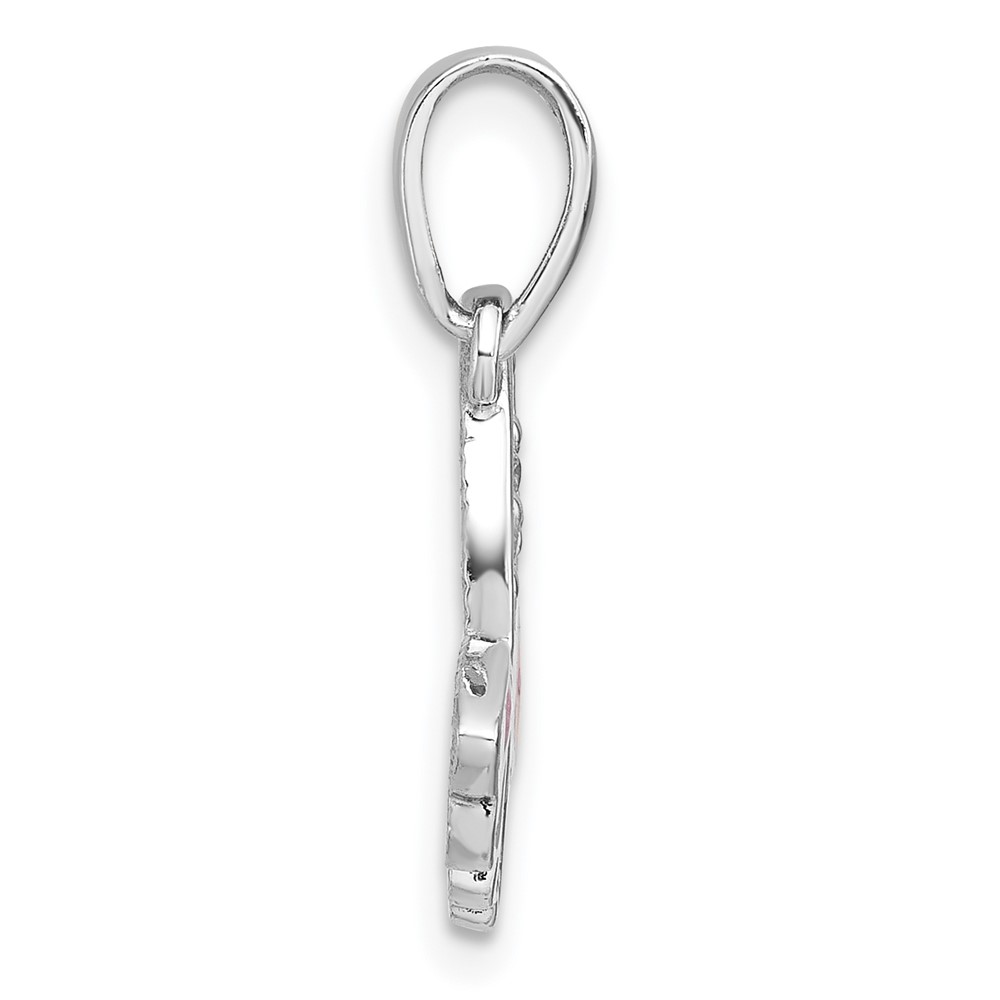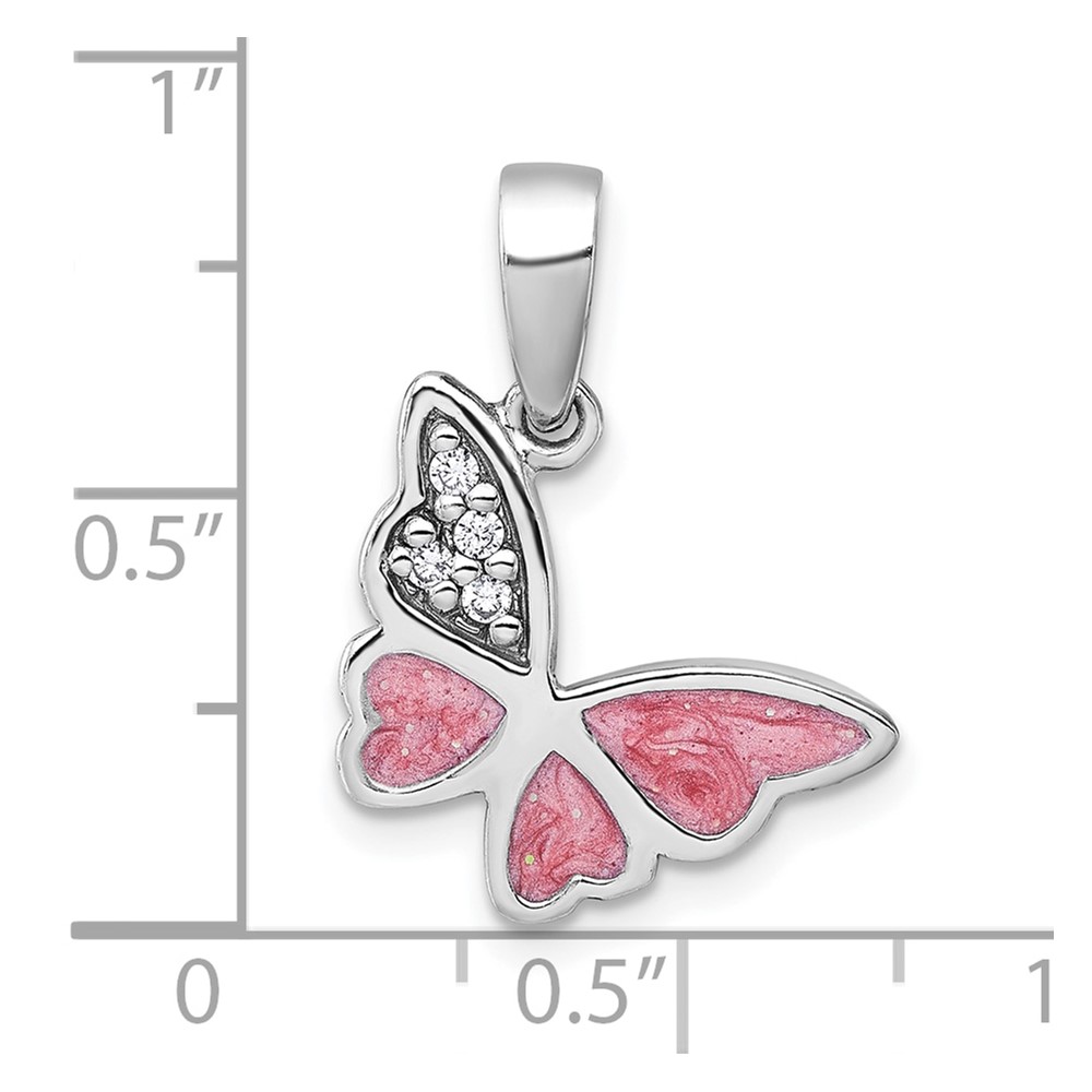 Sterling Silver Rhodium-plated Polished CZ and Pink Enamel Butterfly Pendant