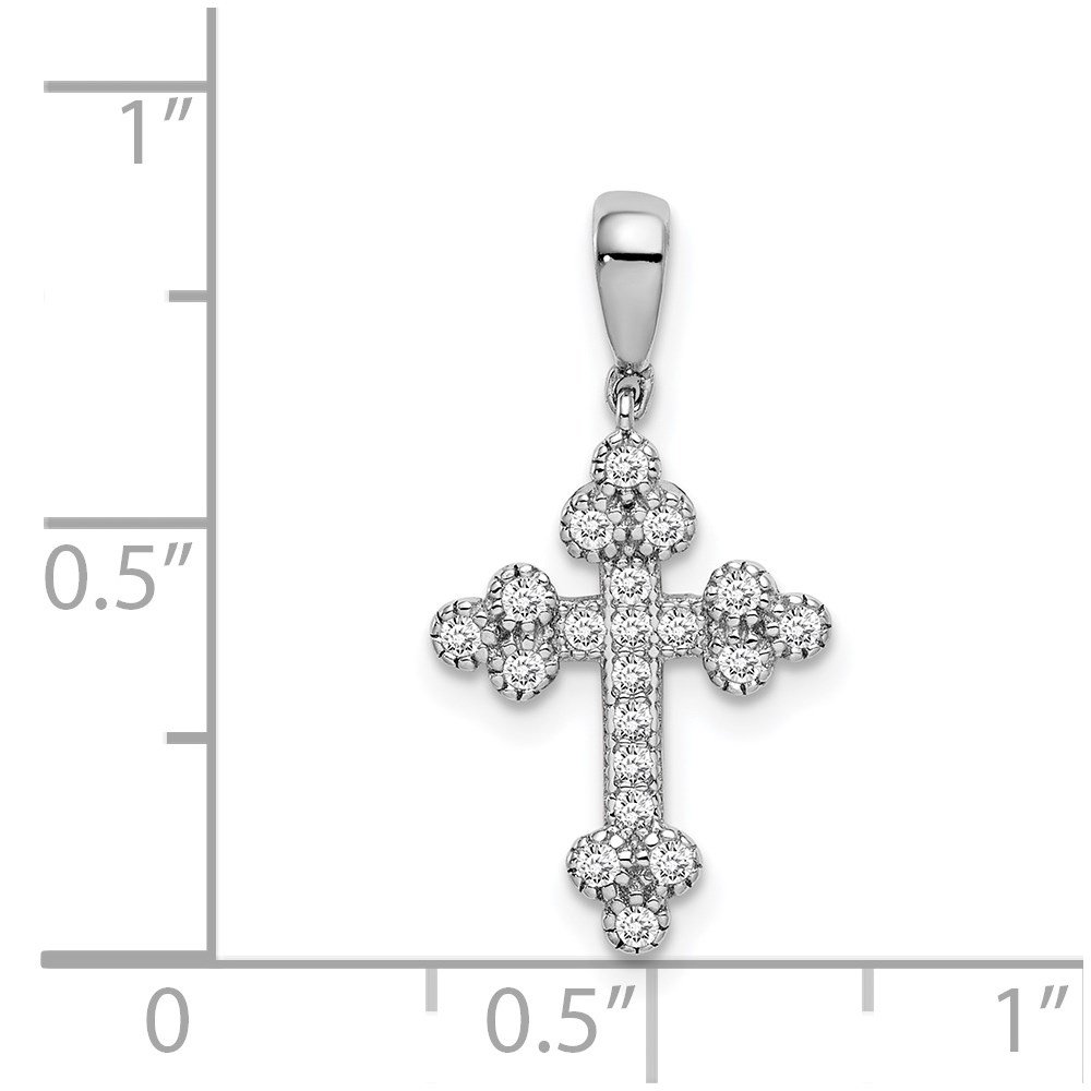 Sterling Silver Rhodium-plated Polished CZ Budded Cross Pendant