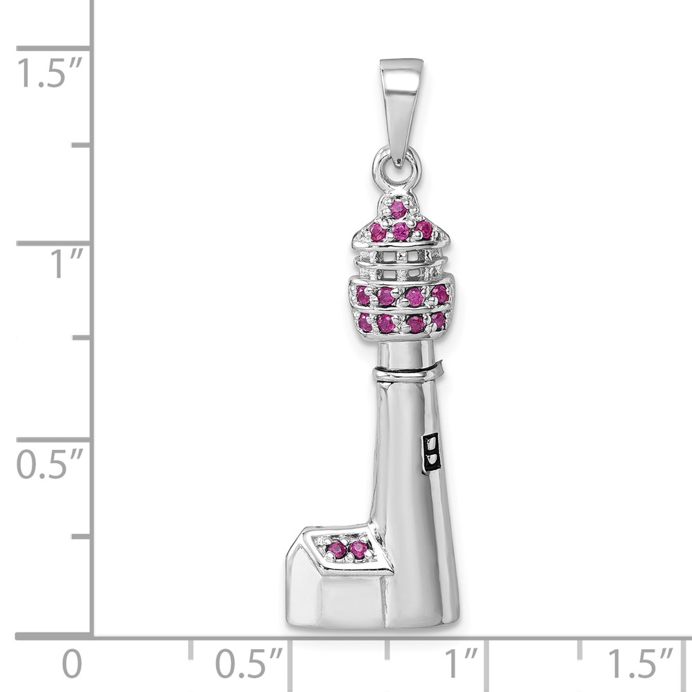 Sterling Silver Rhodium-Plated Polished CZ Cape May Lighthouse Pendant