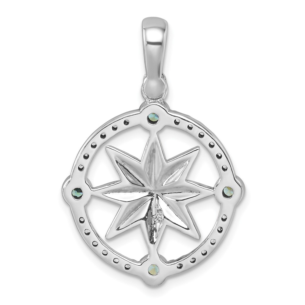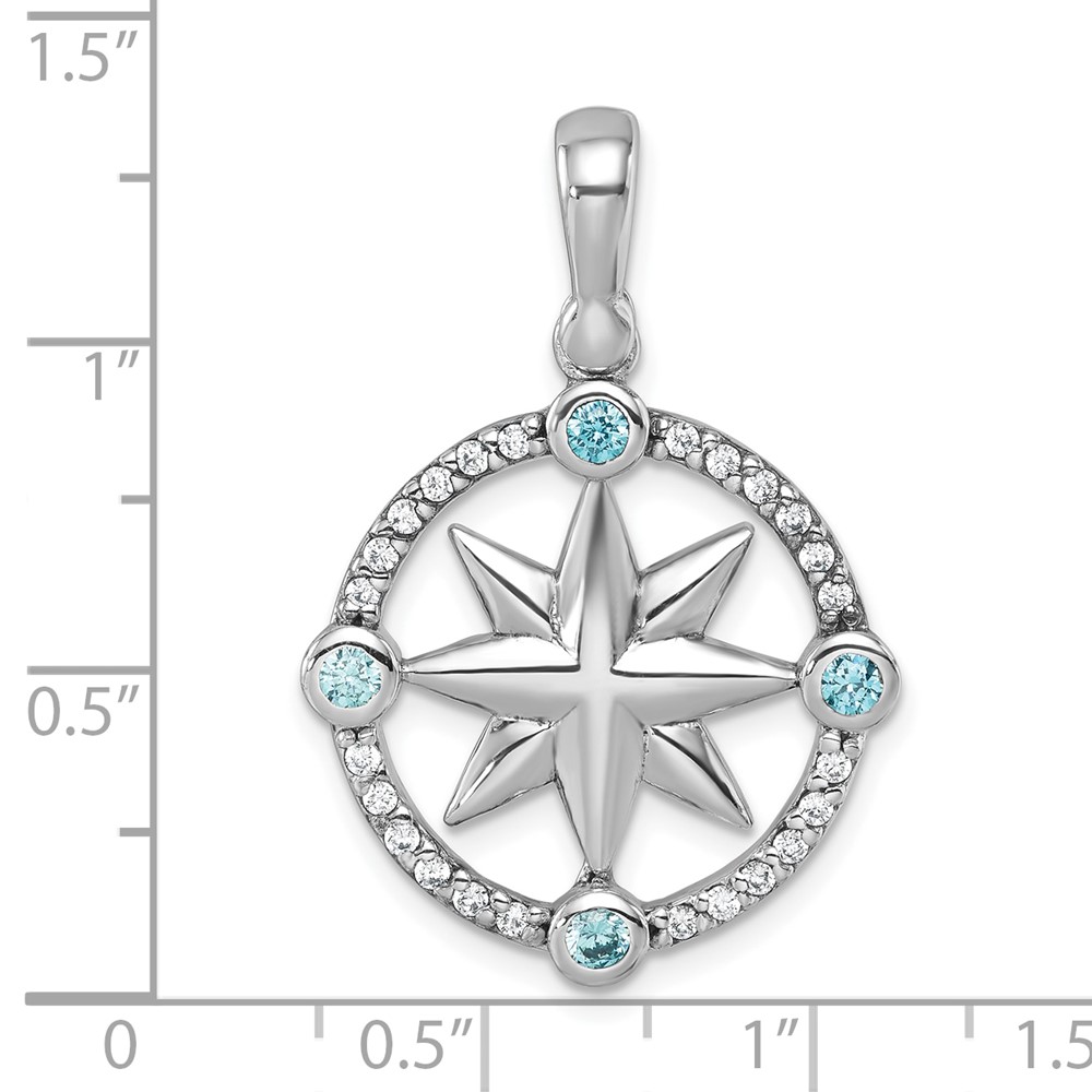 Sterling Silver Rhodium-Plated Polished CZ Compass Pendant