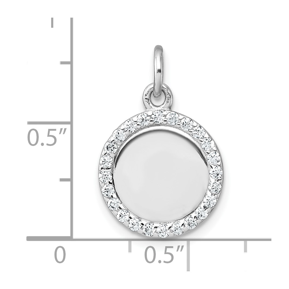 Sterling Silver Rhodium-plated Polished CZ Engraveable Circle Pendant