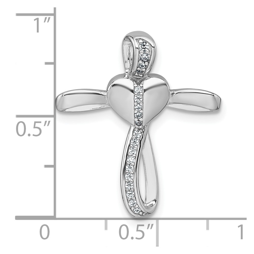 Sterling Silver Rhodium-plated Polished CZ Heart Cross Chain Slide Pendant